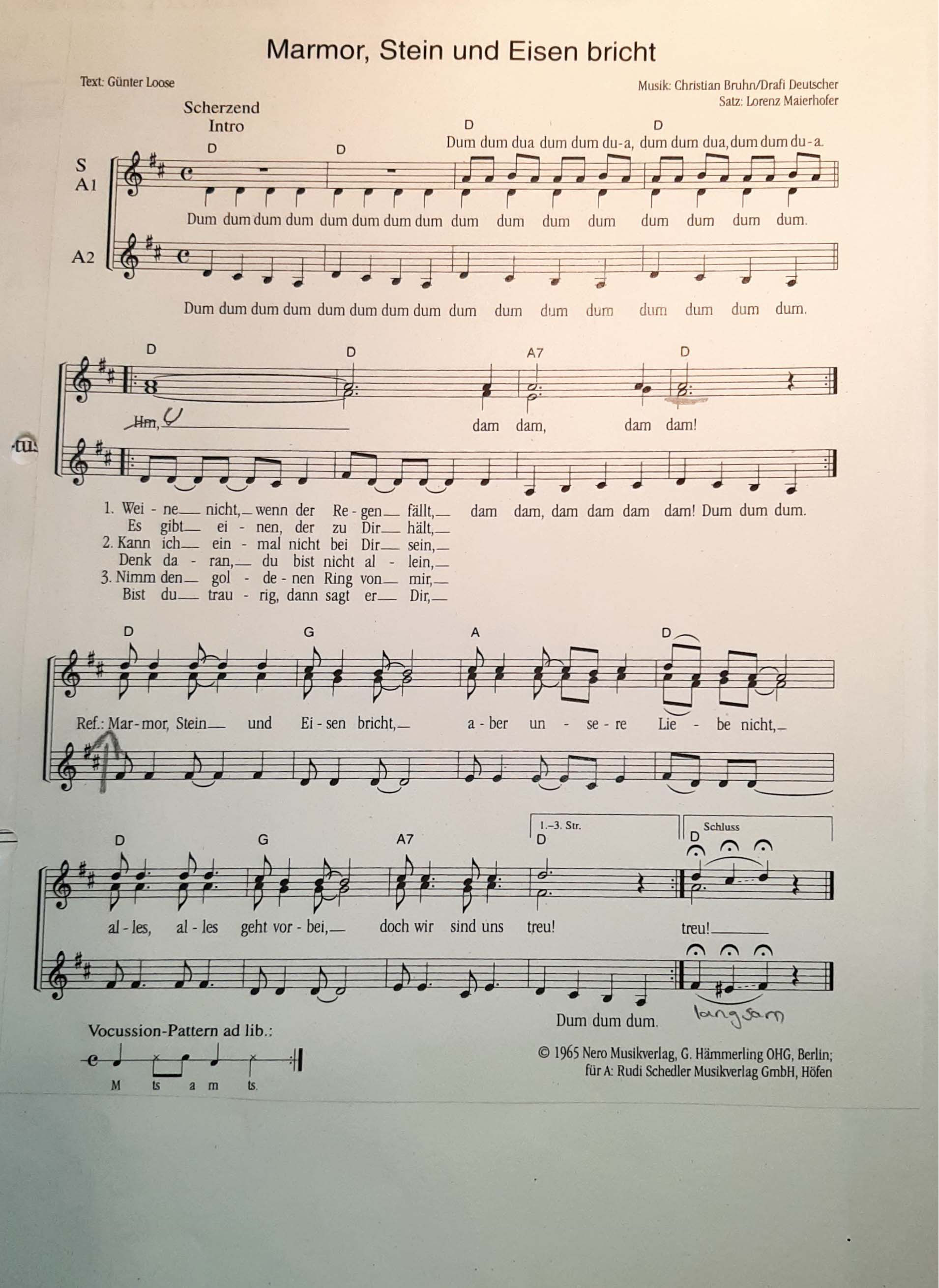 Marmor, Stein und Eisen bricht (SAA)