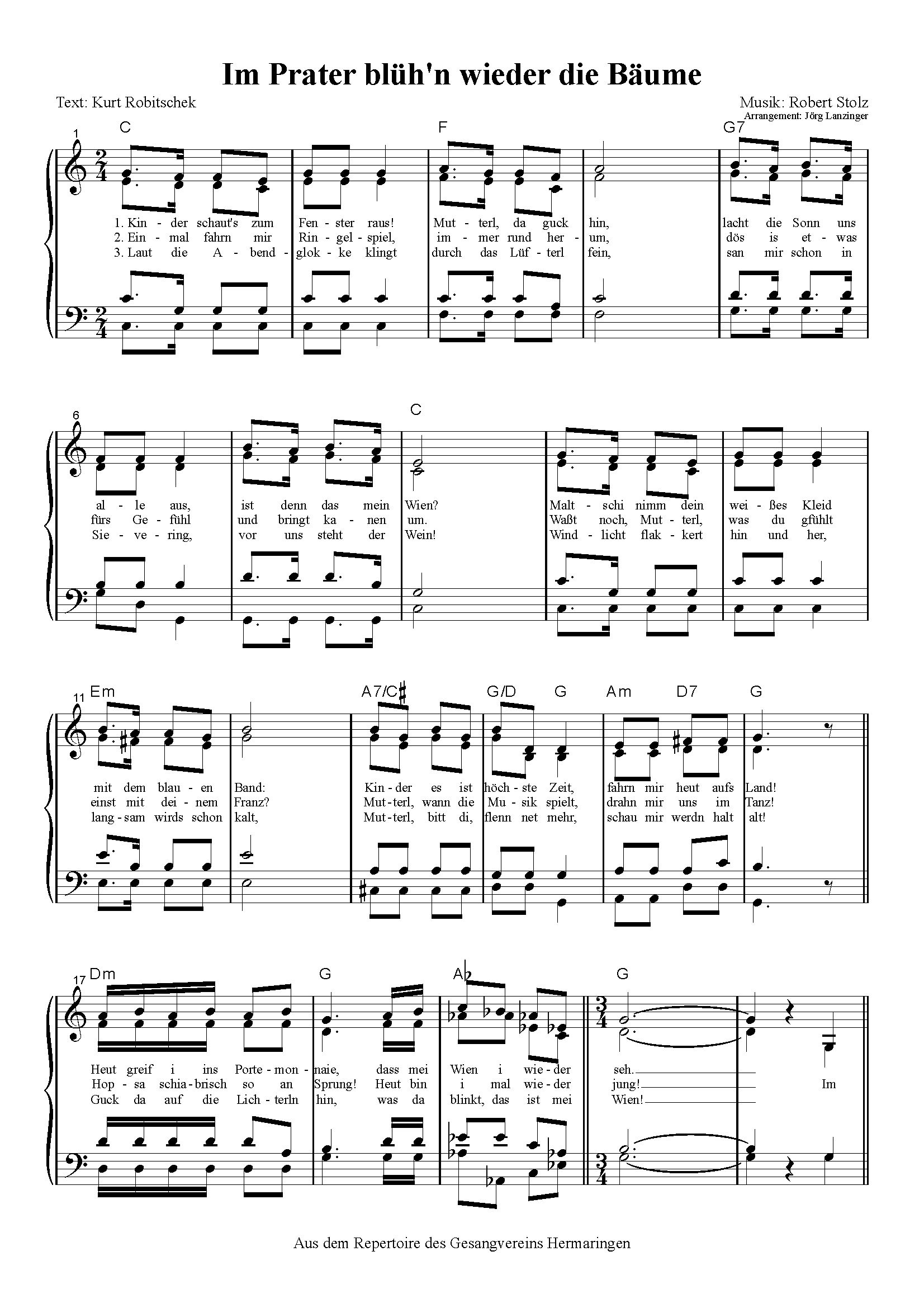 Im Prater blühn’n wieder die Bäume (SATB)
